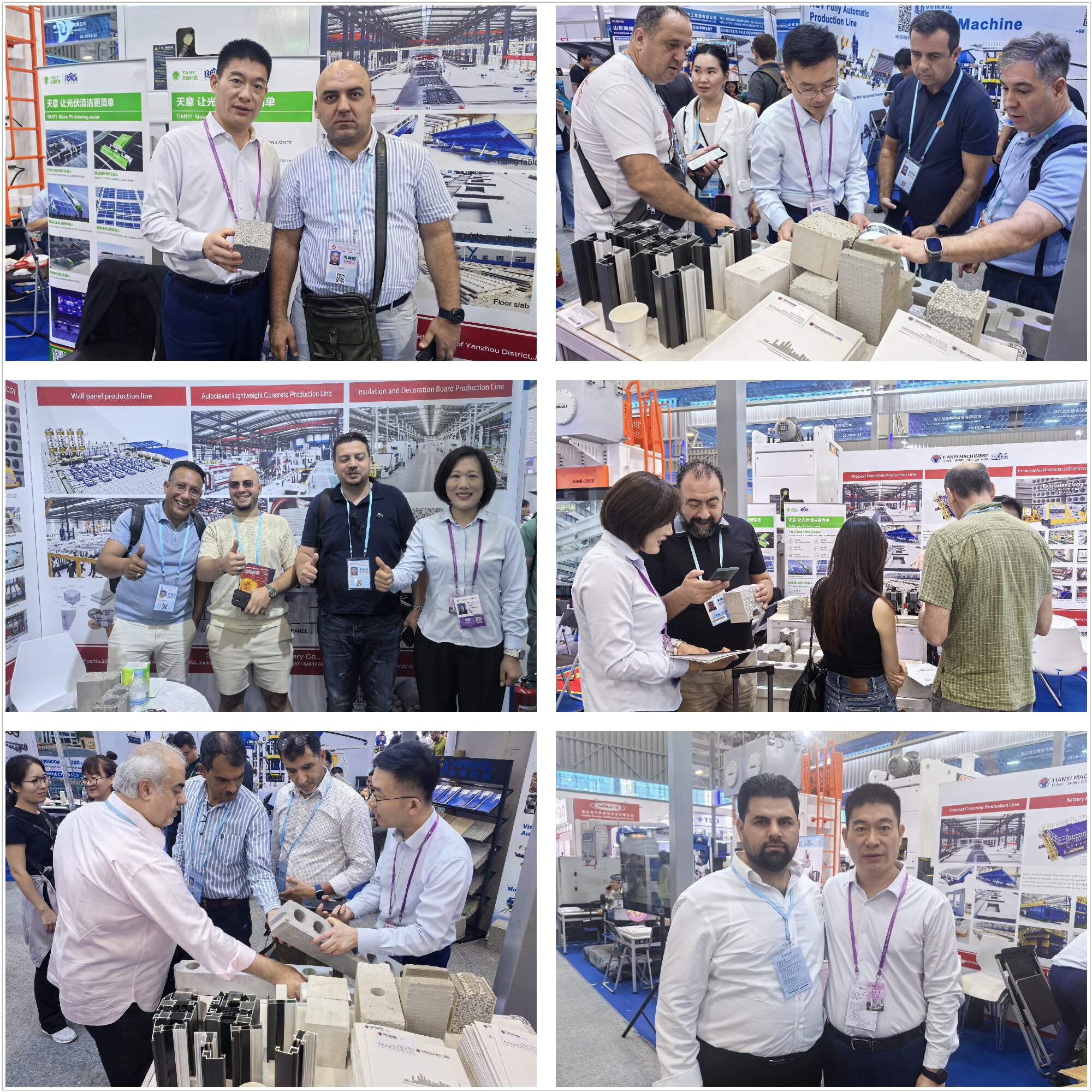 天意集团此次选择加工机械设备与通用机械两大核心展区布局双展位,既体现了对装配式建筑装备产业链的垂直整合能力,也彰显了精准捕捉国际市场需求的战略眼光。天意集团重点展示了PC构件智能装备、轻质墙板智能装备、保温装饰一体板装备等核心产品。这些设备深度融合智能传感技术、5G通信与大数据分析,实现了从原料配比、模具成型到质量检测的全流程自动化控制,并支持生产数据实时追溯与云端管理,为全球建筑行业提供了工业化解决方案。