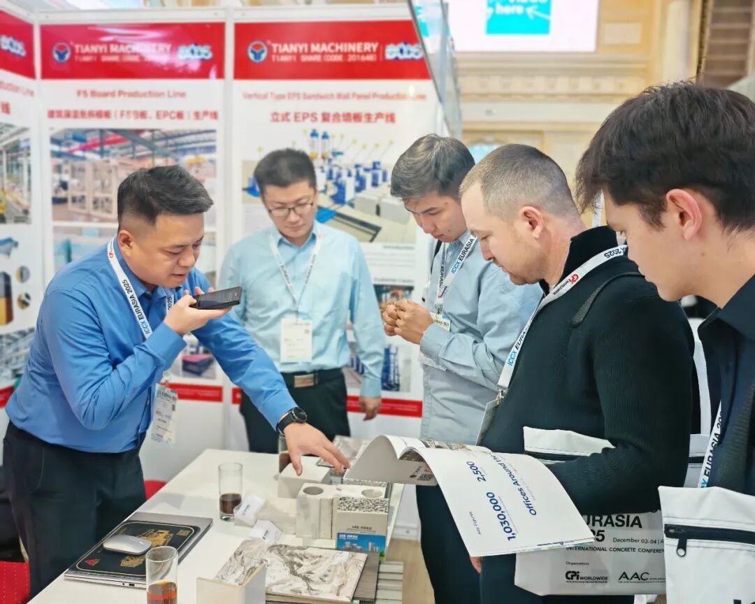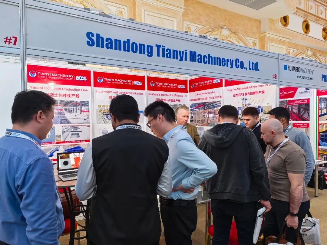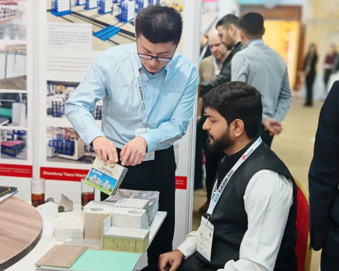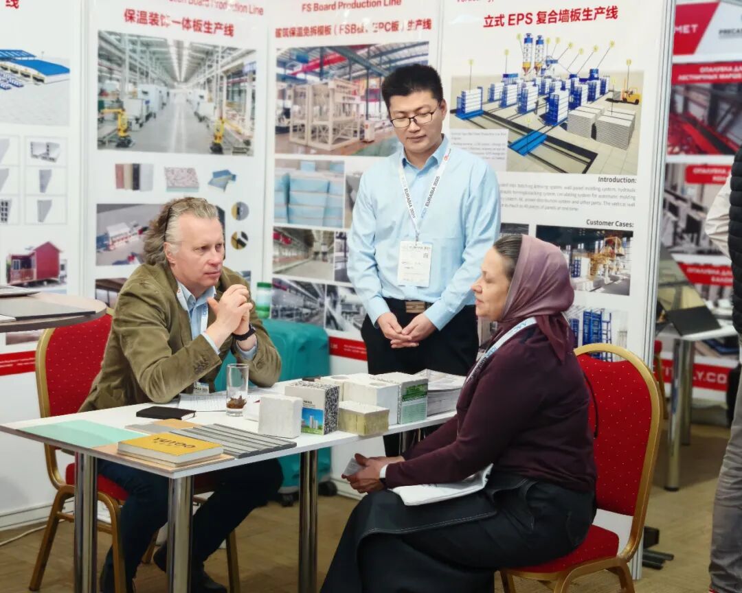 在装配式建筑装备方面,天意集团展示了PC生产线、墙板装备和保温装饰一体板生产线。PC生产线自动化流程设计,减少人工依赖,契合当地劳动力技能水平不一的现状,有助于提升施工稳定性;墙板装备实现工业废渣再利用,降低建材成本,符合环保政策要求;保温装饰一体板生产线可生产集多种功能于一体的新型墙体材料,采用模块化设计,能根据客户需求灵活配置不同饰面工艺,满足中亚地区多样化建筑风格需求。