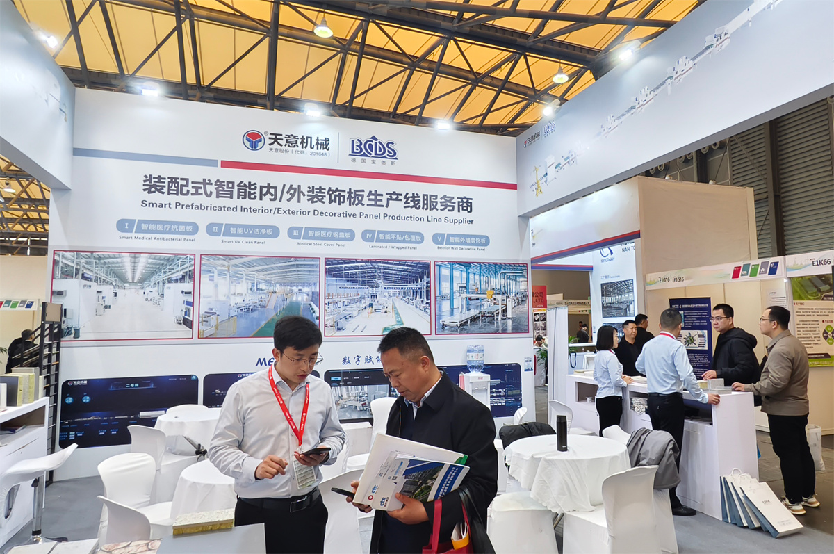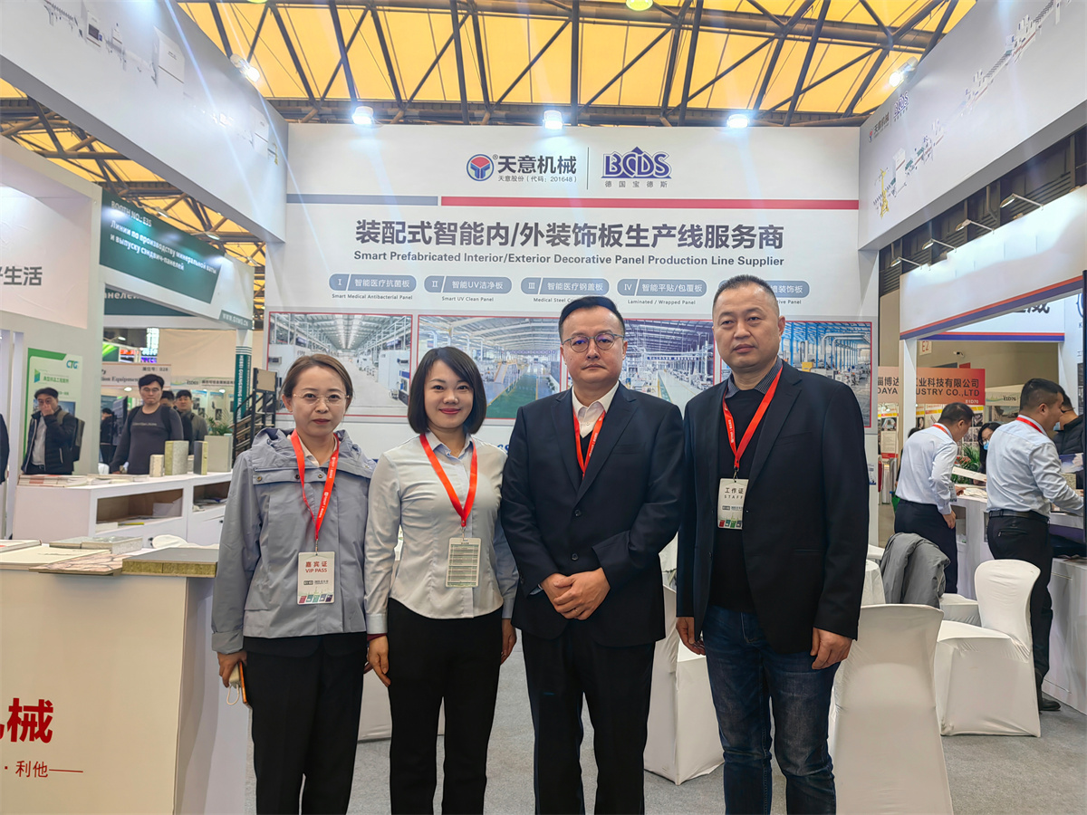 作为国家装配式建筑产业基地,天意集团始终致力于技术创新与标准制定。公司主导起草了多项国家及行业标准,拥有众多技术专利,产品在国内外市场上均享有较高声誉。此次参展的装配式智能内/外装饰板生产线,正是技术实力的集中体现。通过智能化、数字化设计,该生产线不仅提升了生产效率与产品质量,更推动了建筑行业的绿色转型与可持续发展。