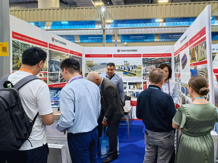 开展首日,天意展位人气旺盛、洽谈氛围热烈。展位重点展示了PC构件智能装备、轻质墙板智能装备、保温装饰一体板全自动生产线等核心产品。这些设备融合智能传感、5G通信与大数据技术,达成原料配比、模具成型、质量检测全流程自动化,生产数据可实时追溯与云端管理,能为全球建筑工业化提供一站式方案,吸引了众多海外采购商驻足洽谈,现场演示体验不断。