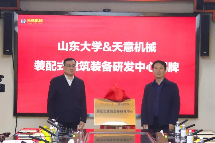 10月21日,天意机械与山东大学共同举办了产学研对接会暨装配式建筑装备研发中心的揭牌仪式。出席此次仪式的领导包括山东大学机械工程学院院长万熠,山东大学荣聘教授张承瑞,山东大学教授姬帅,市科技局党组成员、副局长付贵福,区科技局党组书记、局长武云飞,以及山东天意机械股份有限公司董事长刘洪彬等。仪式由区政协副主席戴宪亭主持。